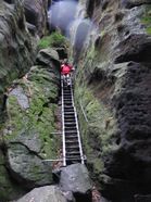 diese wurde von uns aus Richtung Häntzschelstiege im Abstieg begangen. Entgegen der Ankündigung auf dem Schild halte ich diese nicht für schwierig, zumindest wenn man schon die Zwillings- und Häntzschelstiege begangen hat.