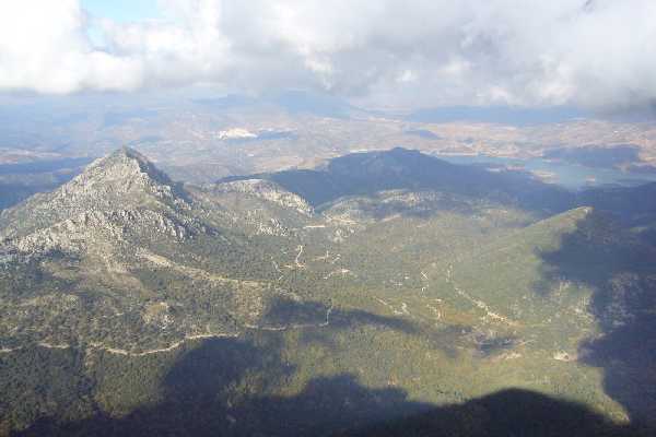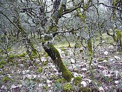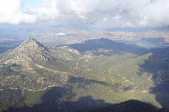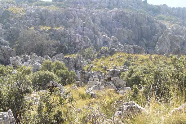 Das dritte Beispiel ist in der Sierra Grazalema in der Nähe von Ronda angesiedelt. Das dieses Gebiet besonders schutzwürdig ist, sind pro Tag maximal 25 Personen auf jeder der 4 festgelegten Routen zulässig. Es ist also sinnvoll für den potentiellen Wanderer, sich rechtzeitig zu informieren und sich akkreditieren zu lassen. Die Erlangung der Genehmigung ist nicht ganz so einfach, da nur die Nationalparkverwaltung in El Bosque die Genehmigung erteilt und die Verwaltung leider nur des Spanischen mächtig ist. Nichtsdestotrotz lohnt sich die Anstrengung. Wir erstiegen den Torreón. Ausgangspunkt ist dabei ein Parkplatz an der Straße nach Grazalema. Auf den 700 Höhenmetern wechselt dabei die Vegetation von dichterem Baumbewuchs über Sträucher bis auf dem Gipfel nur noch Gräser vorhanden sind. Die Besonderheit dieses Gebietes sind die Igeltannen. Der kleine Fleck, der vom Torreón aus in der Senke zu sehen ist, stellt den größten zusammenhängenden Bestand an Igeltannen Spaniens dar. Es gelang uns auf dieser Tour, neben einheimischen Katzen und Tauben auch etwas einheimisches Wild zu beobachten.