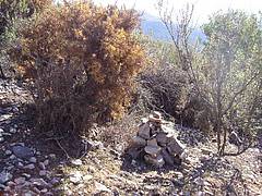 Letzteres war auf unseren Wanderungen durch verschiedene Naturparks immer wieder festzustellen. Exemplarisch sollen drei Touren kurz dargestellt werden. Die erste war rund um Frigiliana in der Sierra Almijara. Von der Mittelmeerküste geht es sofort steil hinauf und man ist in kurzer Zeit auf 450 m über dem Meeresspiegel. Ein kleines Dorf mit weißen Häusern, das aber bereits von zunehmender Bauaktivität erfasst wird. Auf einer Rundwanderung gelangt man durch ausgetrocknete Flussläufe und bestrauchte Aufstiege auf einen schönen Kammweg. Man kann bewaldete Hänge neben tiefen Tälern betrachten und dabei noch frische, salzige Meeresluft genießen. Nur die Ausschilderung der Wanderwege ist gewöhnungsbedürftig, denn häufig stehen nur Steinmännchen auf dem Weg. Das auf dem Bild zu sehende ist dabei ein größeres und besonders schönes Exemplar.